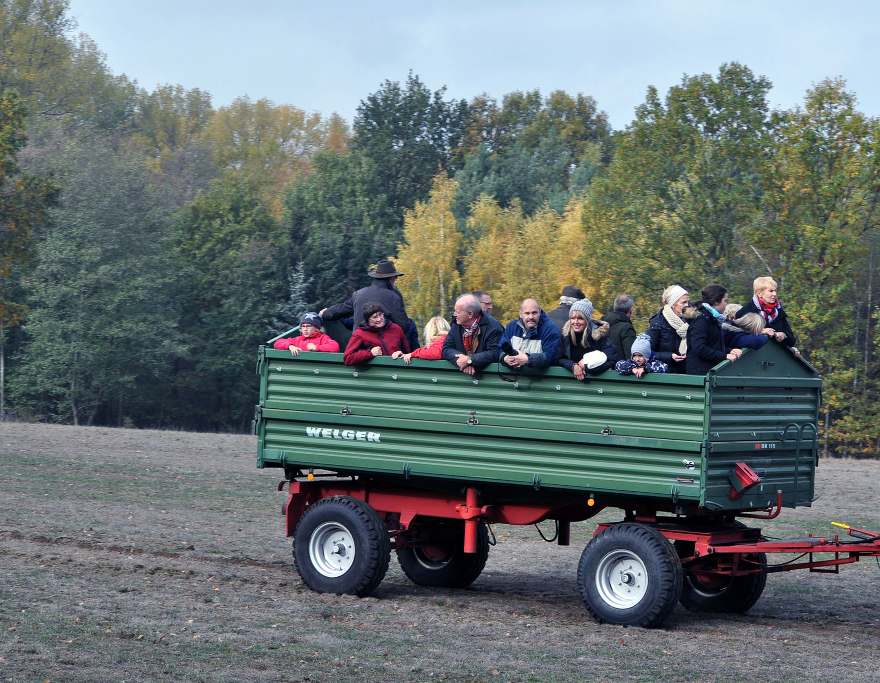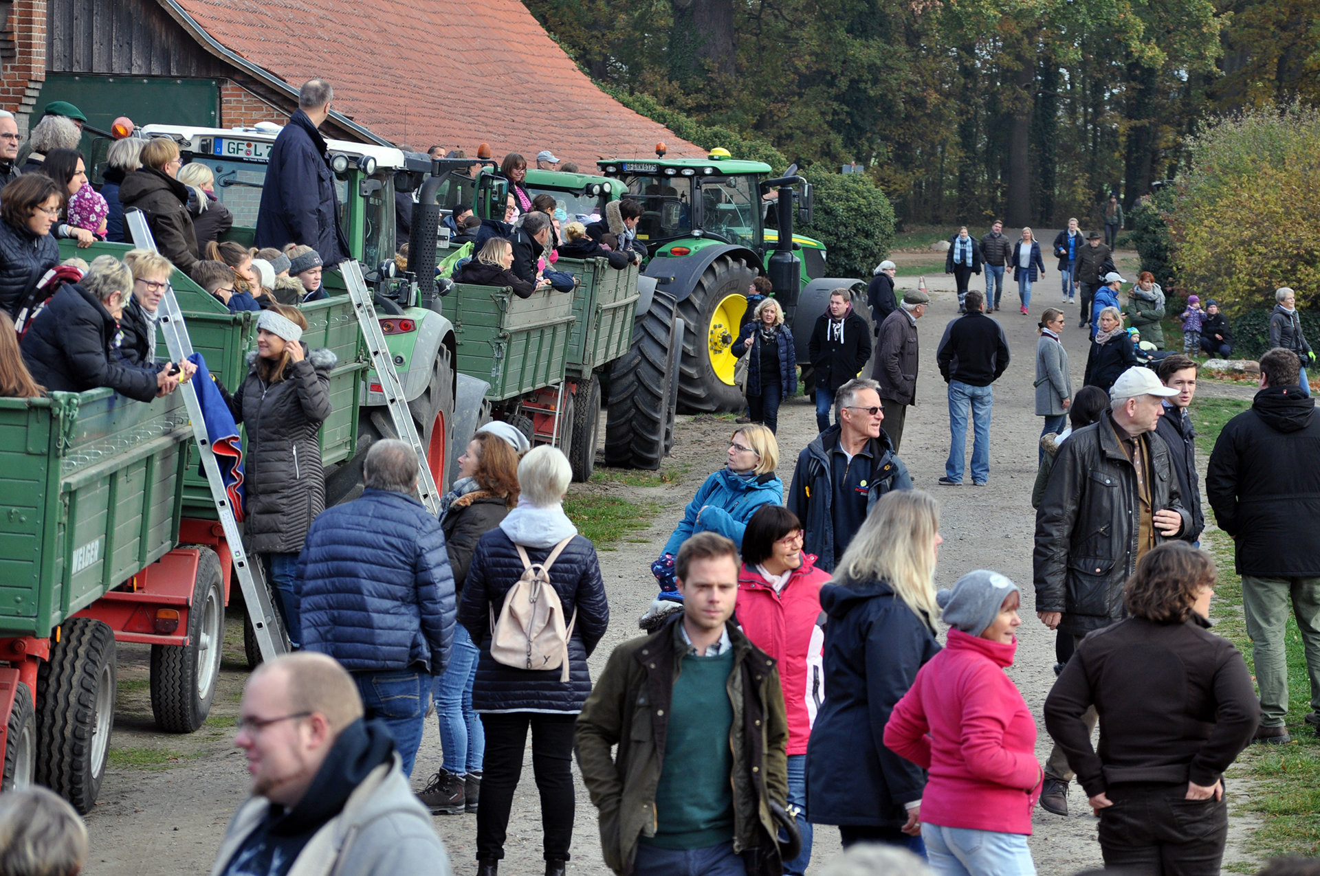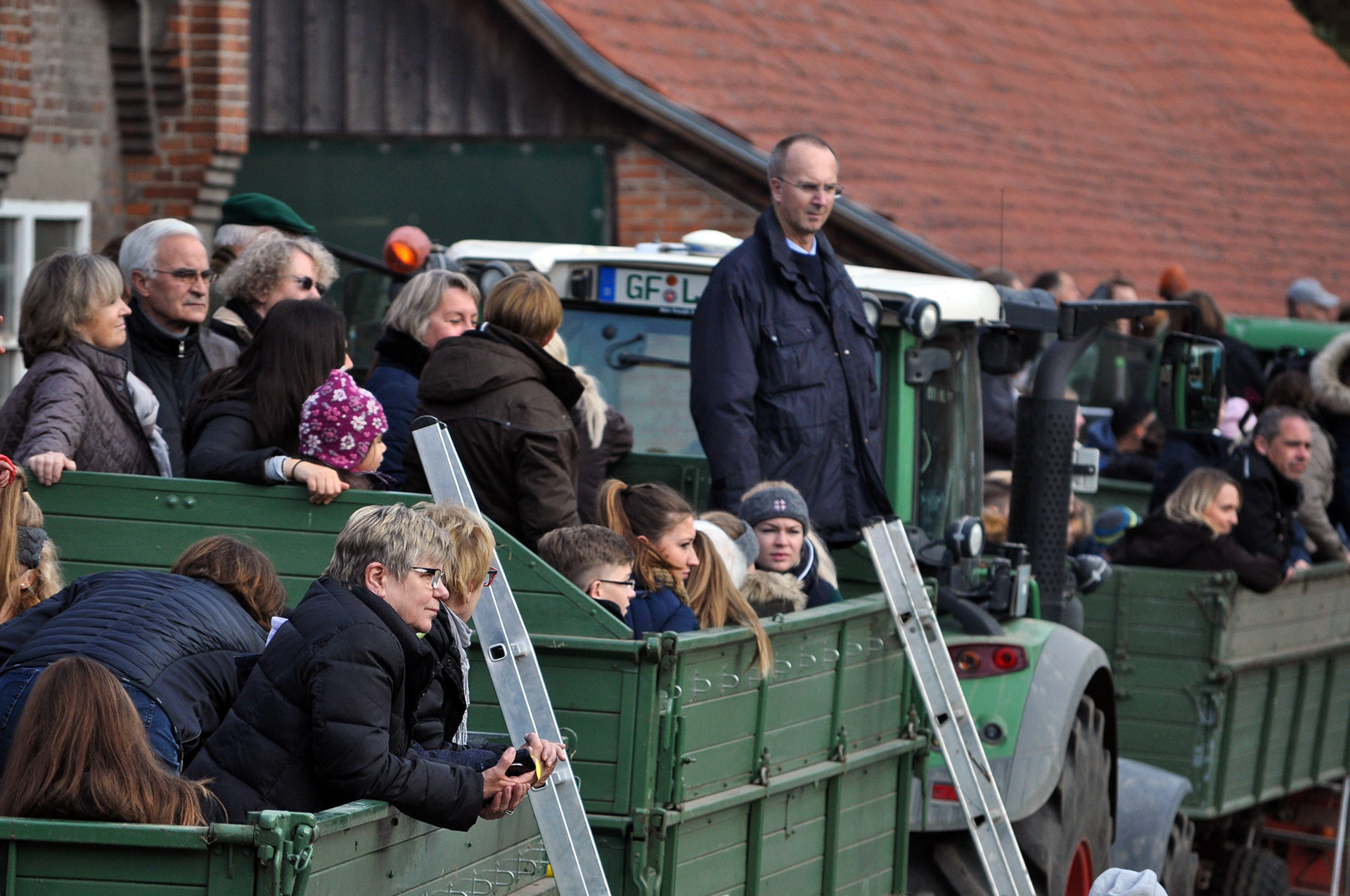 Zum ersten Mal dabei ist Dorothea Kohrs aus Meine: „Es ist ein besonderes Erlebnis.“ Sie hat ihre Enkeltöchter dabei. Jella (10) und Jannike (8). „Ich finde es sehr, sehr schön. In Berlin gibt es das halt nicht. Toll, dass Oma und Opa hier wohnen“, freut sich Jella. Sie sitzen auf Strohballen auf dem Treckeranhänger, juchzen bei jeder Kurve, haben Spaß. So wie die anderen etwa 300 Gäste auch.