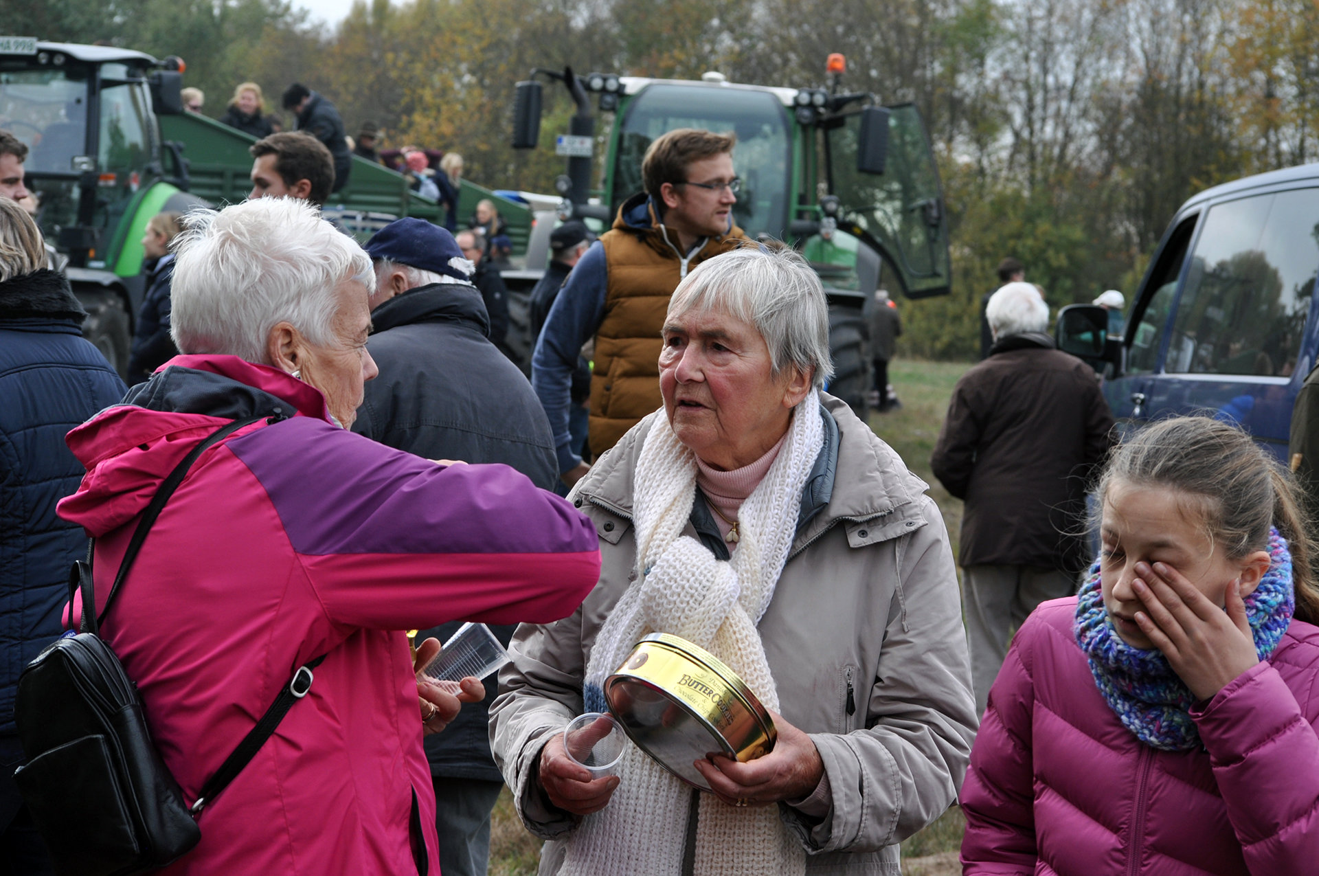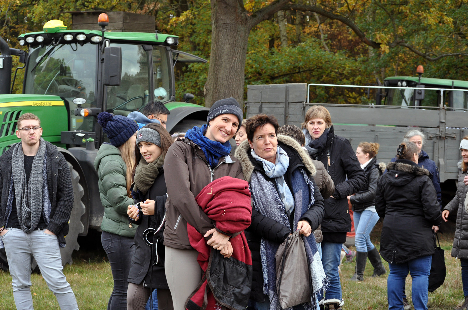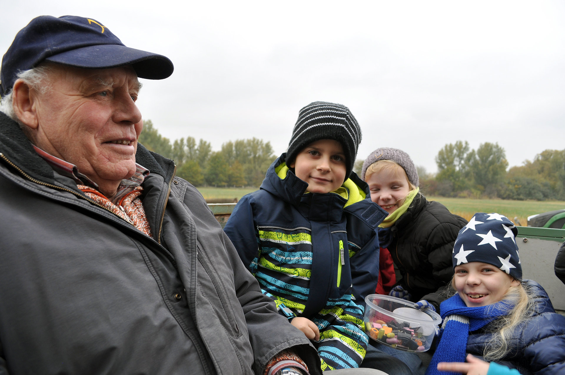 Zum ersten Mal dabei ist Dorothea Kohrs aus Meine: „Es ist ein besonderes Erlebnis.“ Sie hat ihre Enkeltöchter dabei. Jella (10) und Jannike (8). „Ich finde es sehr, sehr schön. In Berlin gibt es das halt nicht. Toll, dass Oma und Opa hier wohnen“, freut sich Jella. Sie sitzen auf Strohballen auf dem Treckeranhänger, juchzen bei jeder Kurve, haben Spaß. So wie die anderen etwa 300 Gäste auch.