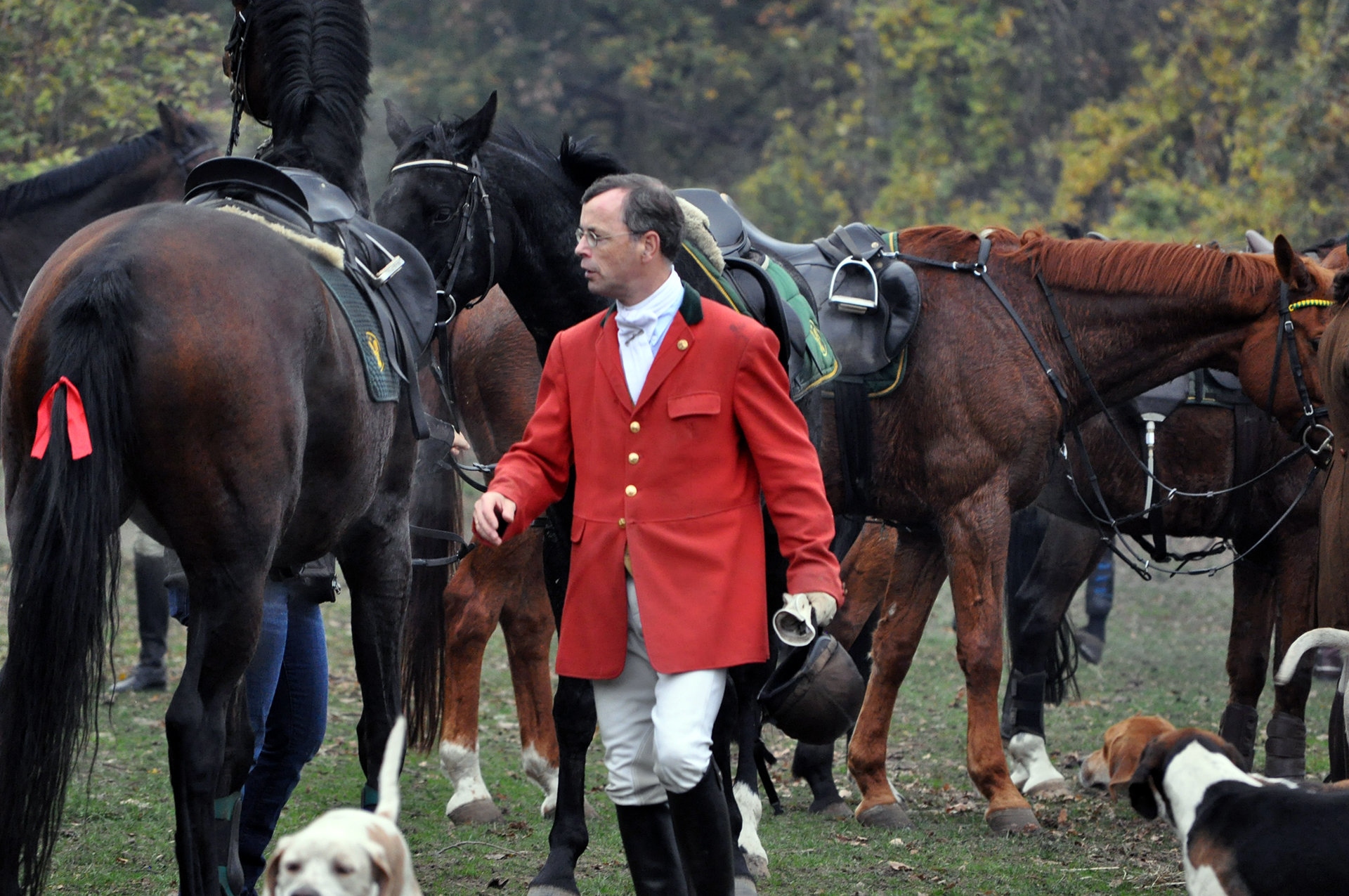 Der 38-Jährige gibt die Schleppjagd frei, führt das Reiterfeld an, führt die Hunde, ruft sie mit seinem kleinen Huntinghorn zusammen, hilft, wenn sie mal auf der falschen Fährte sind. Doch mit Vigo, dem Kopfhund der Meute, passiert das selten. „Er ist immer sehr sicher, schnell auf der Fährte und gibt Laut, so dass er den Rest der Meute sicher zum Schleppenende führt“ erzählt der Master.