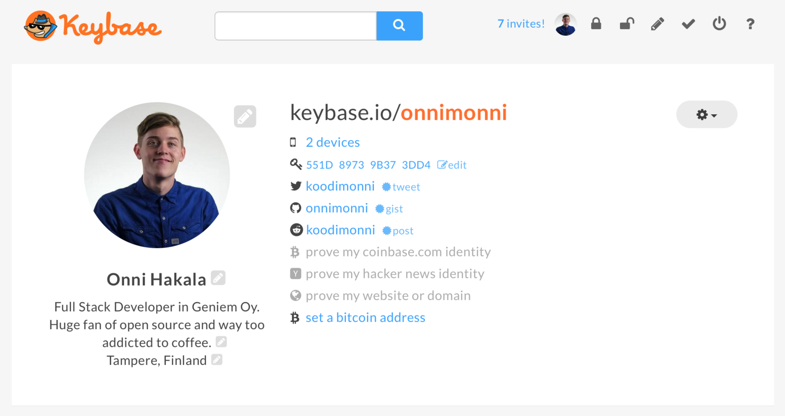 Jotta voit lähettää/vastaanottaa viestejä salattuna tarvitset molempien osapuolien julkiset avaimet. Tätä varten kannattaa tsekkaa keybase.io