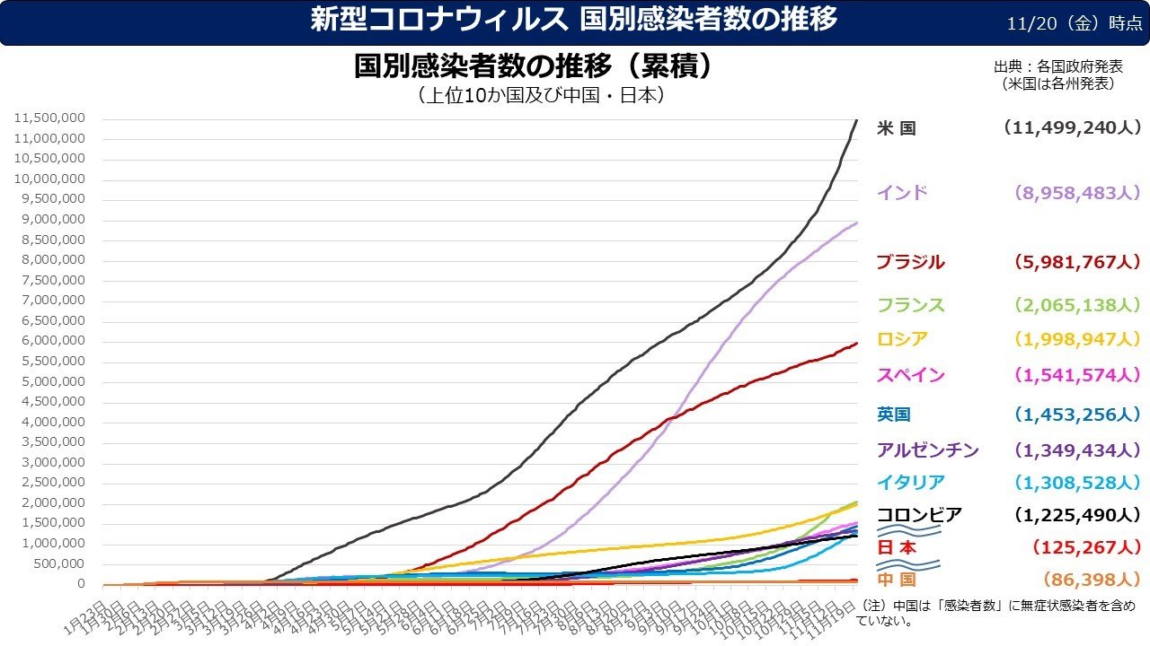 中華人民共和国湖北省武漢市で初めて検出された新興感染症であり、以降世界各地で感染が拡大(パンデミック)したと当初思われていたが、その後、イタリアの国立がん研究所の研究によると2019年9月に採取した同国での肺がん検査受診者の血液中から新型コロナウイルスの抗体が検出されており、湖北省武漢市で報告された症例より以前から世界にウイルスが広まっていた可能性があることも2020年11月時点で指摘されている。中国政府は、ウイルスは輸入冷凍食品に付着していたもので、国内の科学論文などでも、従来考えられていたよりも早くヨーロッパでウイルスが出現していたと主張し、国営メディアを使って 「新型コロナの起源は中国」との見方を否定する情報の拡散を続けている。この中国側の主張について世界保健機関 (WHO) は、食品や包装のどちらも新型コロナウイルスの感染経路だとは見られていないとの見解を示し、西側諸国の研究機関も中国が主張の論拠とする論文に懐疑的な見解を示している。