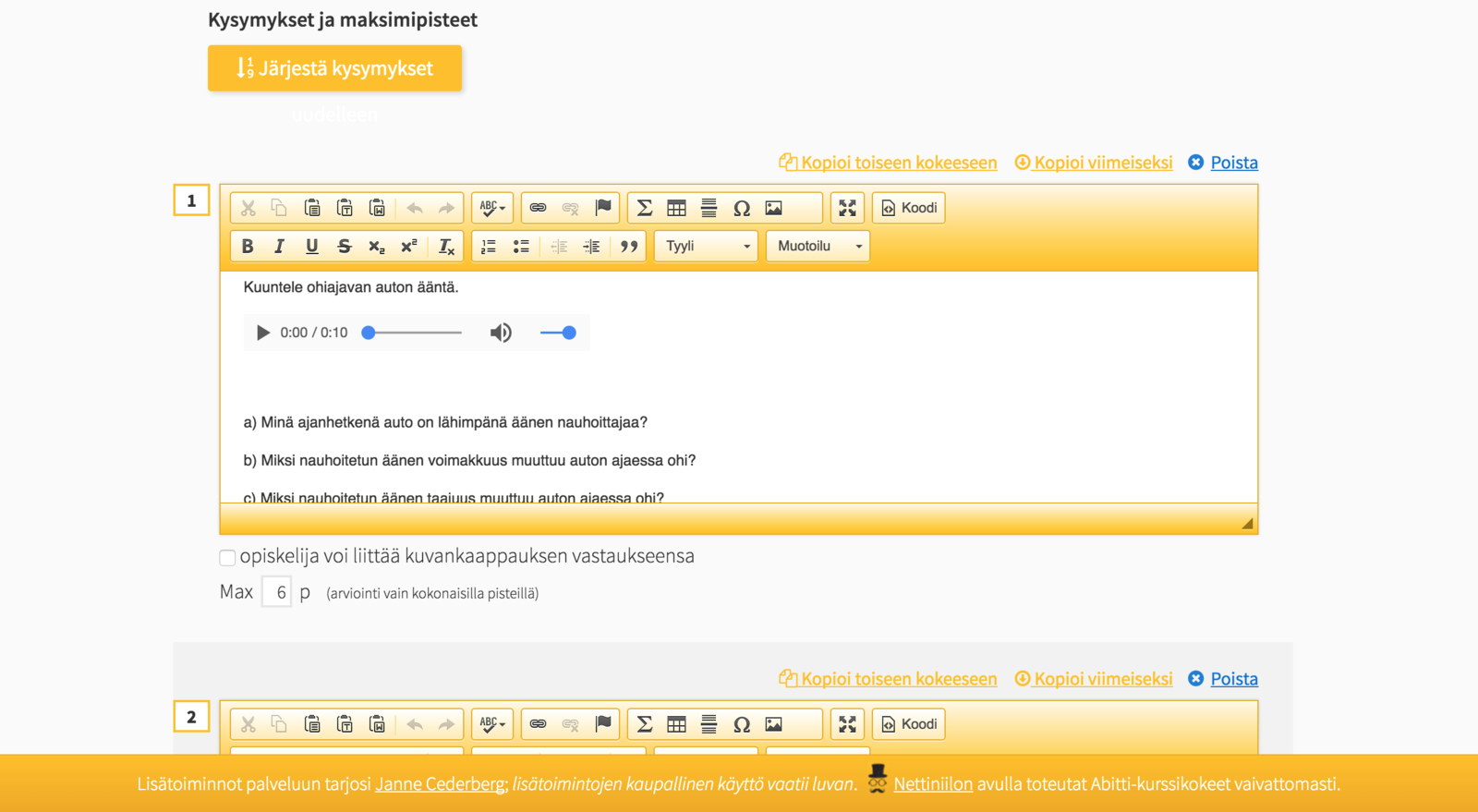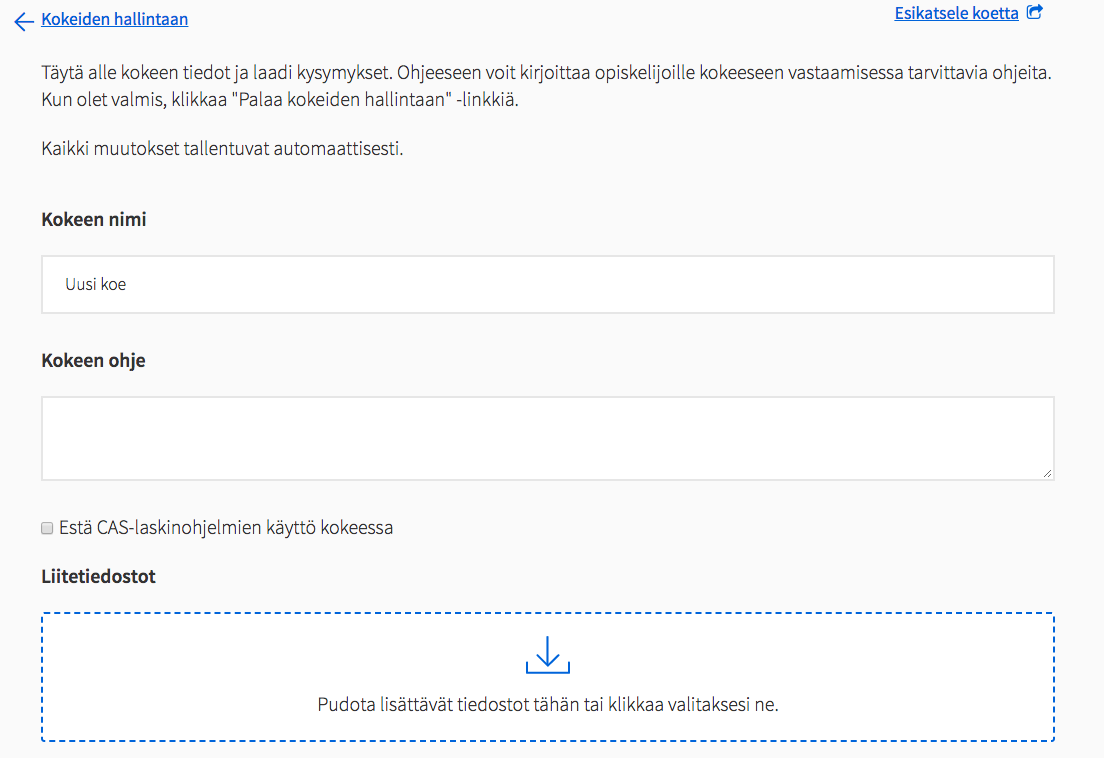 Voit liittää Abitti-kokeisiin myös esim. Geogebra-apletteja tai simulaatioita. Huomaa, että kaikki liitteet täytyy olla tiedostoina.