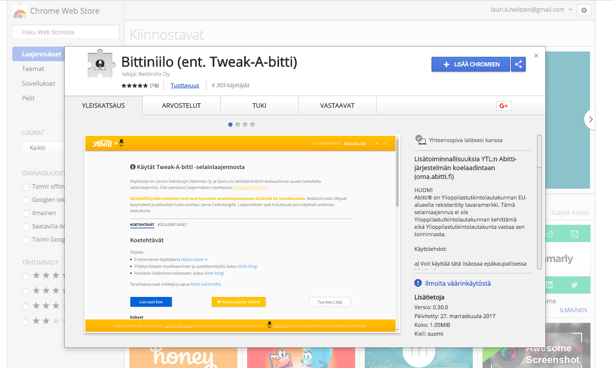 Tweak-A-Bitti selainlaajennus toimii Chromella. Voit lisätä ääni ja kuvatiedostoja suoraan kokeeseen ja muotoilla tehtävänantoja.