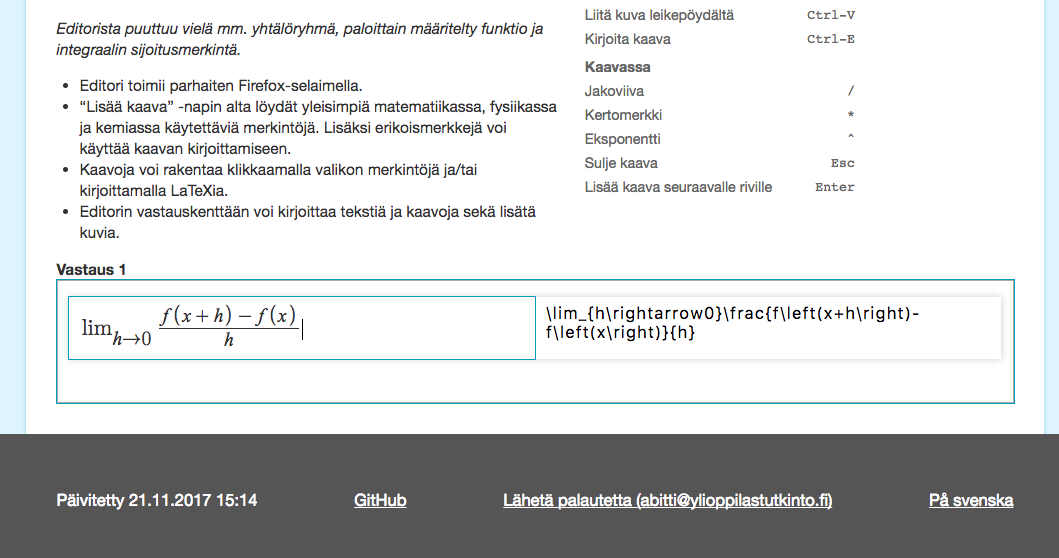 Abitti on tukenut LaTeX-kaavoja 17.5.2016 alkaen.