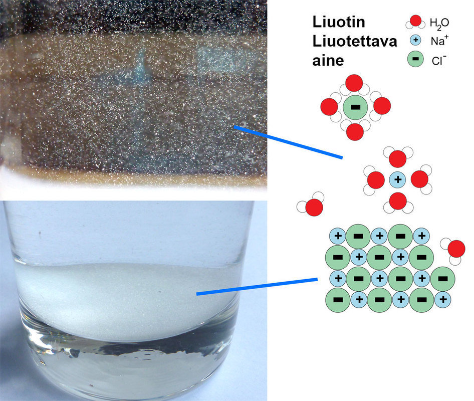= suolaa liuoksessa niin paljon, että osa suolasta ei liukene liuottimeen, vaan se saostuu liuokseen kiinteänä suolana