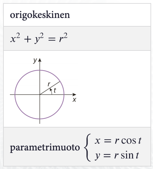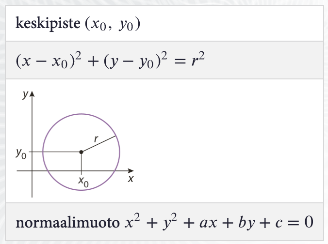 Ympyrä on niiden pisteiden joukko, jotka ovat vakioetäisyydellä (säde) annetusta pisteestä (keskipiste).