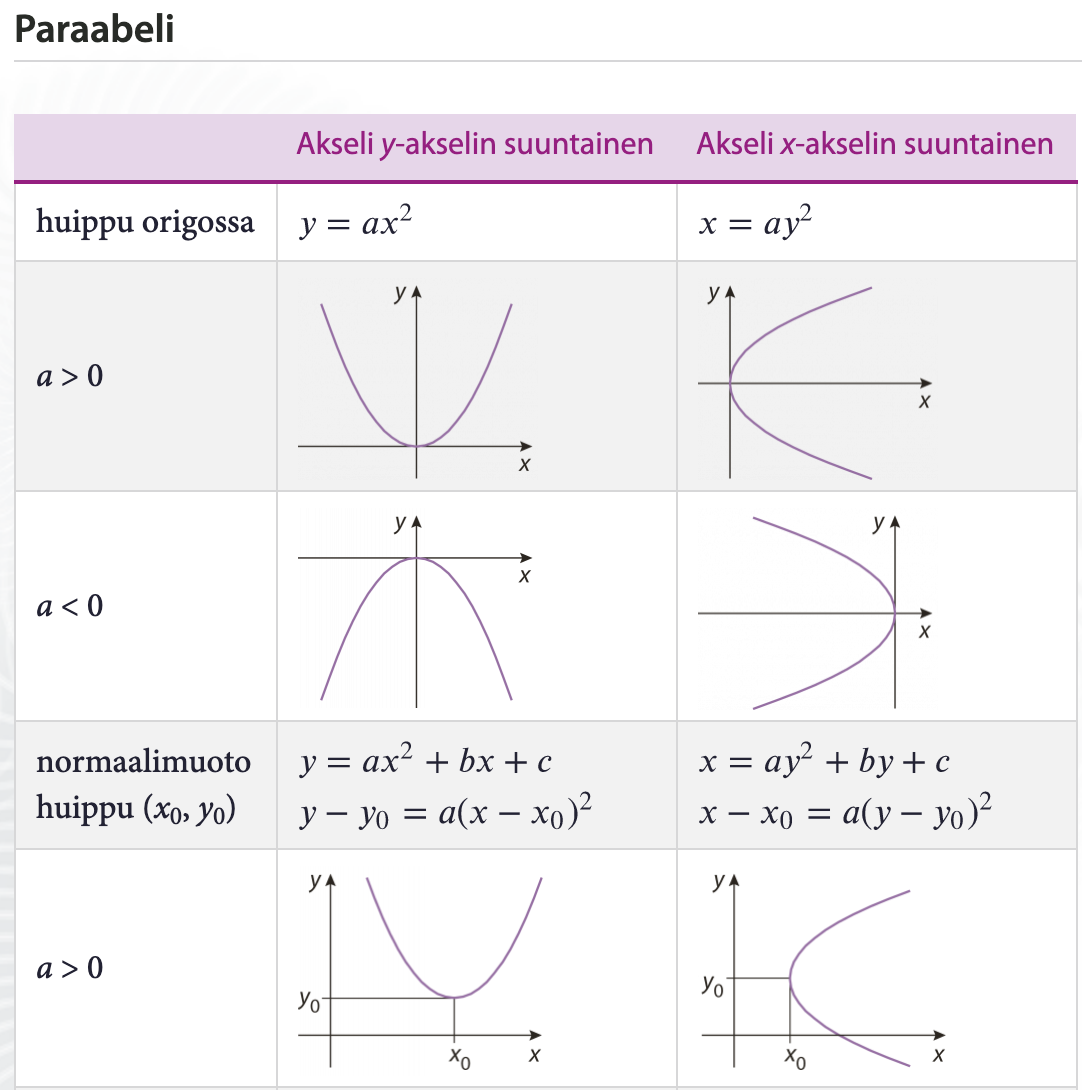 huippu ja esitä paraabelin akselin yhtälö.