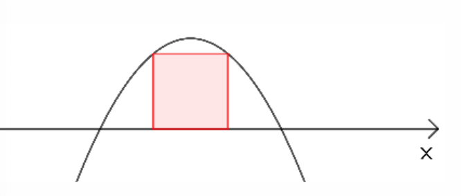 alle piirretään kuvan mukaisesti neliö, jonka yksi sivu on x-akselilla ja vastakkaisen sivun kärjet ovat paraabelilla. Selvitä neliön pinta-alan tarkka arvo.