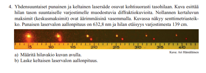 Määritetään keltaisen valon aallonpituus hilayhtälön avulla