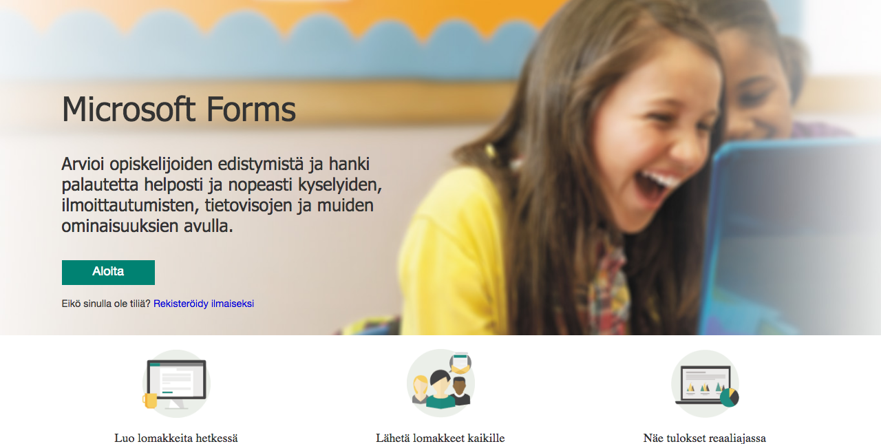 O365 Forms - palvelun avulla voit toteuttaa kyselyitä tai testejä.
