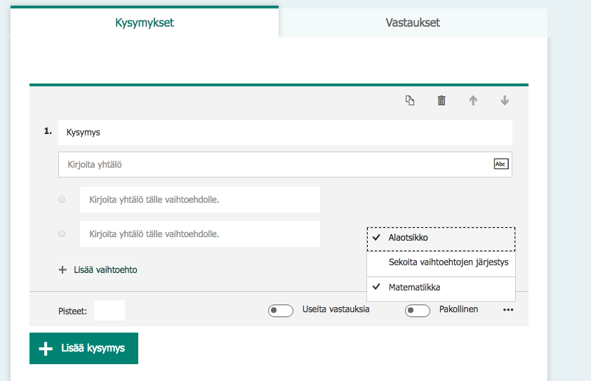 Lomakkeesta voi tehdä kokeen. Tehtävät voi pisteyttää ja ne voi kommentoida. Tämä on uusi ominaisuus Google Formsissa.