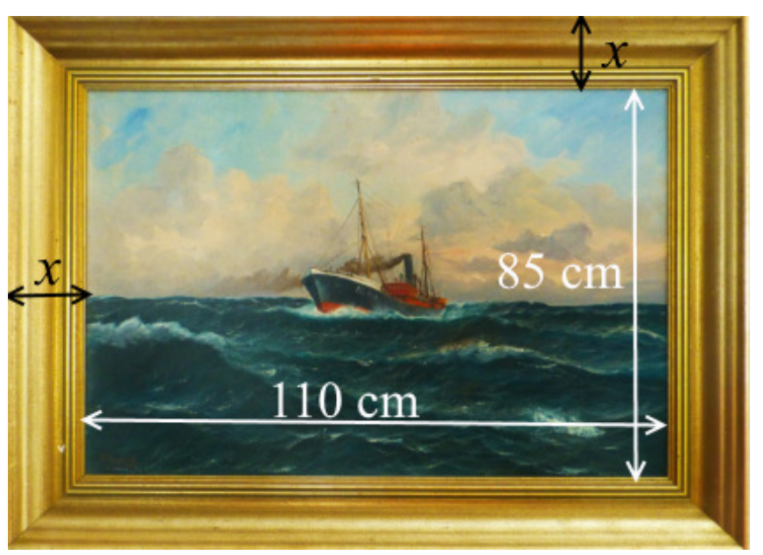 Taiteilija haluaa kehystää taulun, jonka leveys on 110 cm ja korkeus 85 cm kullatuilla kehyksillä.