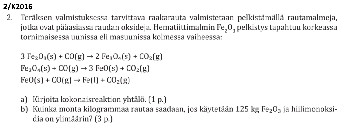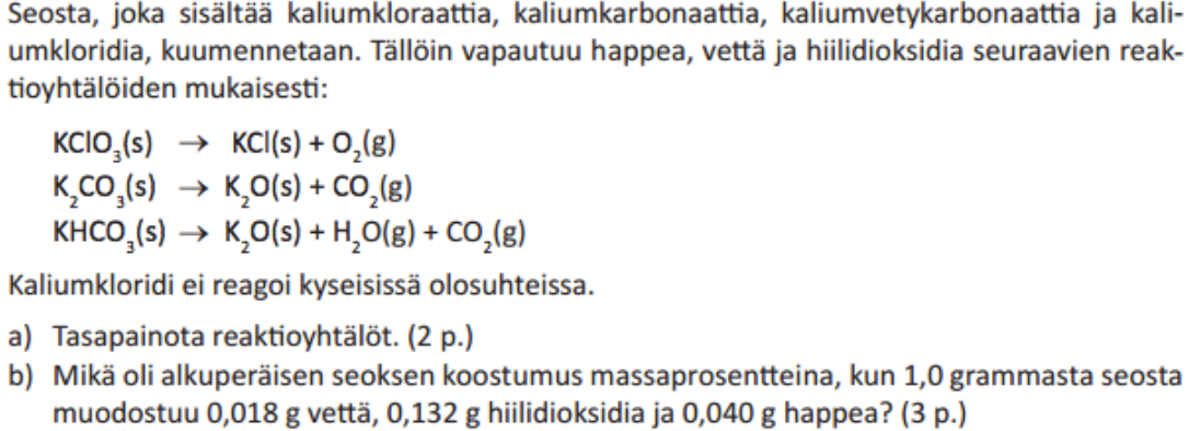 aineiden olomuodot, jos ne on annettu tai ne voidaan päätellä.