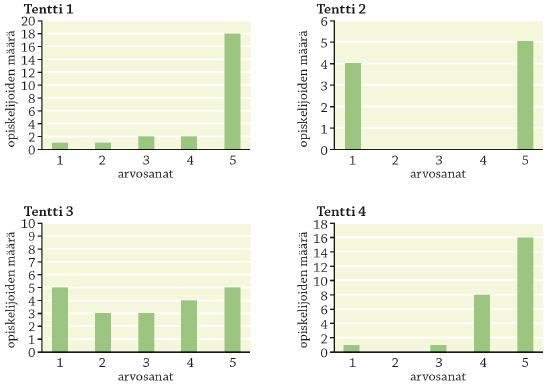 Neljän eri tentin arvosanat jakautuvat seuraavasti:
