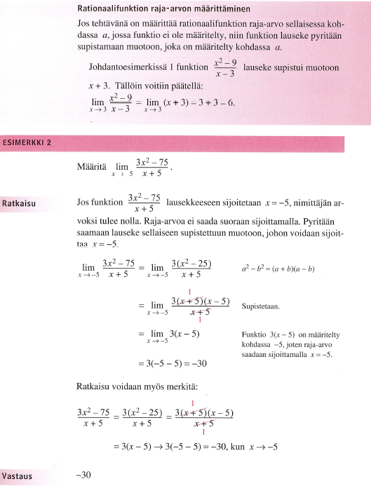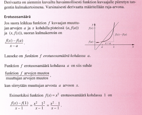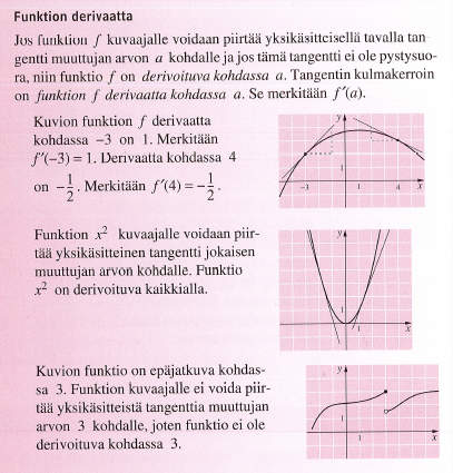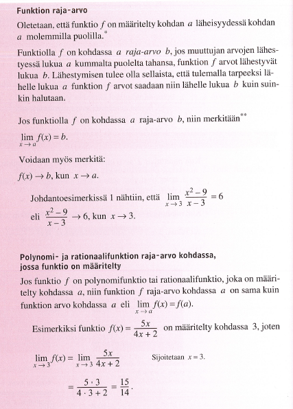 • funktion raja-arvo, jatkuvuus ja derivaatta
