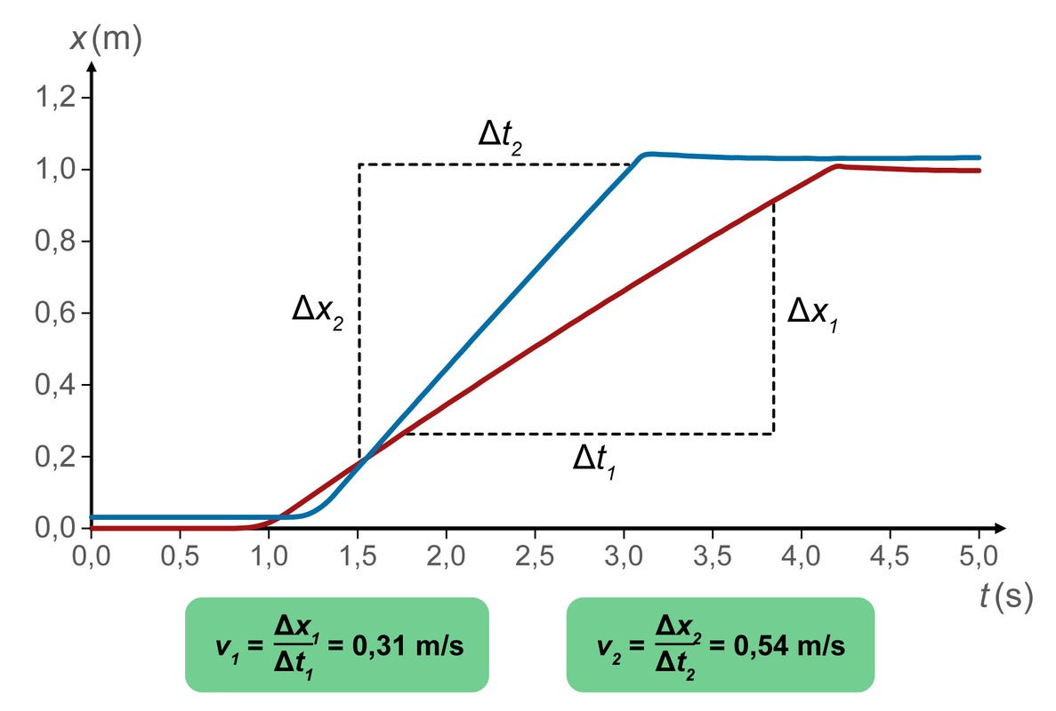 \[ v=\dfrac{\Delta x}{\Delta t}, \]