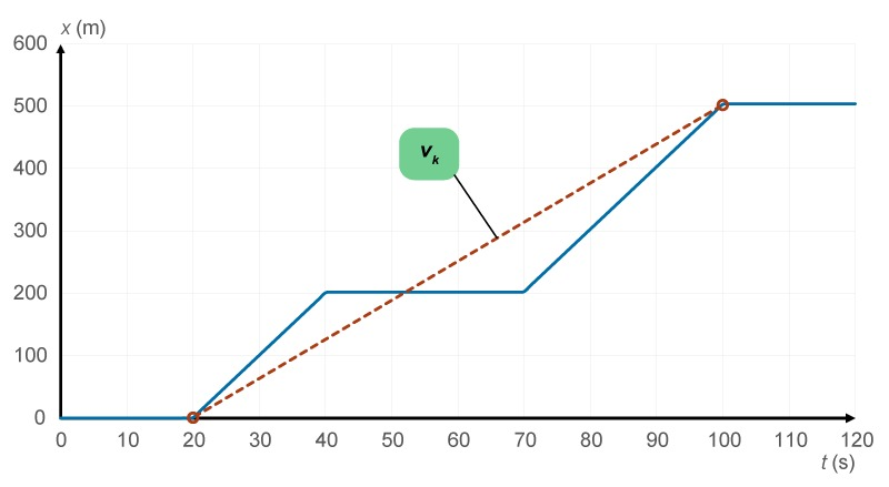 Keskinopeus (\( v_k \)) on matkan keskimääräinen nopeus.