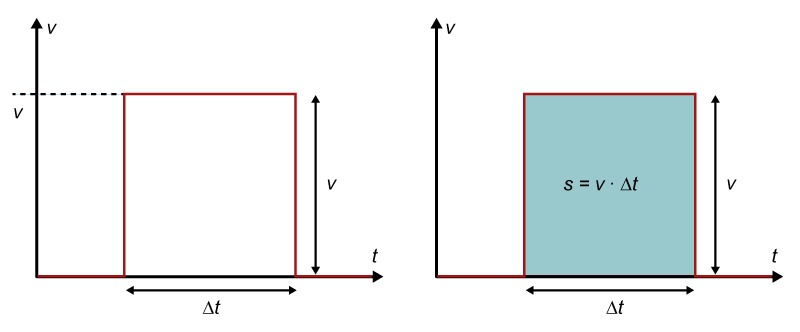 Nopeuden kuvaajan ja x-akselin välinen fysikaalinen pinta-ala kuvaa kuljettua matkaa. Pinta-alaa kutsutaan nopeuden integraaliksi ja pinta-alan määrittämismenetelmää graafiseksi integroinniksi.