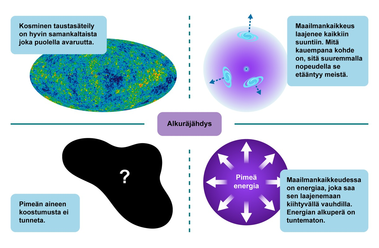 Tähtien ja galaksien välissä on kaasua (suurimmalta osalta vetyä), pölyä ja muita pienkappaleita.