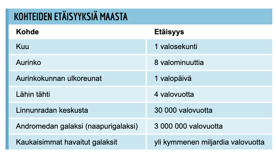 Yksi valosekunti vastaa noin 300 000 kilometriä eli matkaa, jonka valo etenee sekunnin aikana.