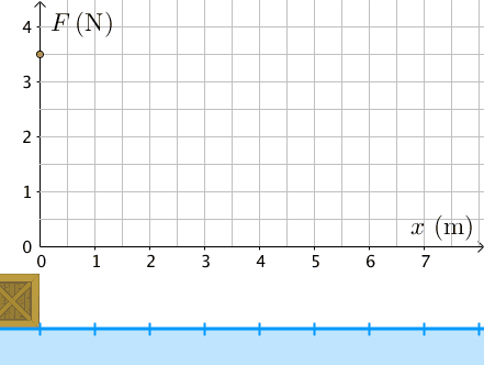 Levossa olevaa laatikkoa, jonka massa on 20 kg, vedetään kuuden metrin pituinen matka liukkaalla alustalla vakiovoimalla.