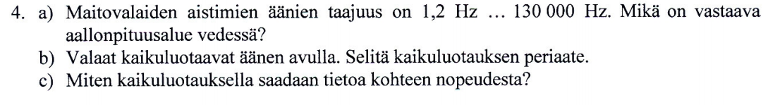 Lasketaan aaltoliikkeen perusyhtälön avulla aallonpituus.