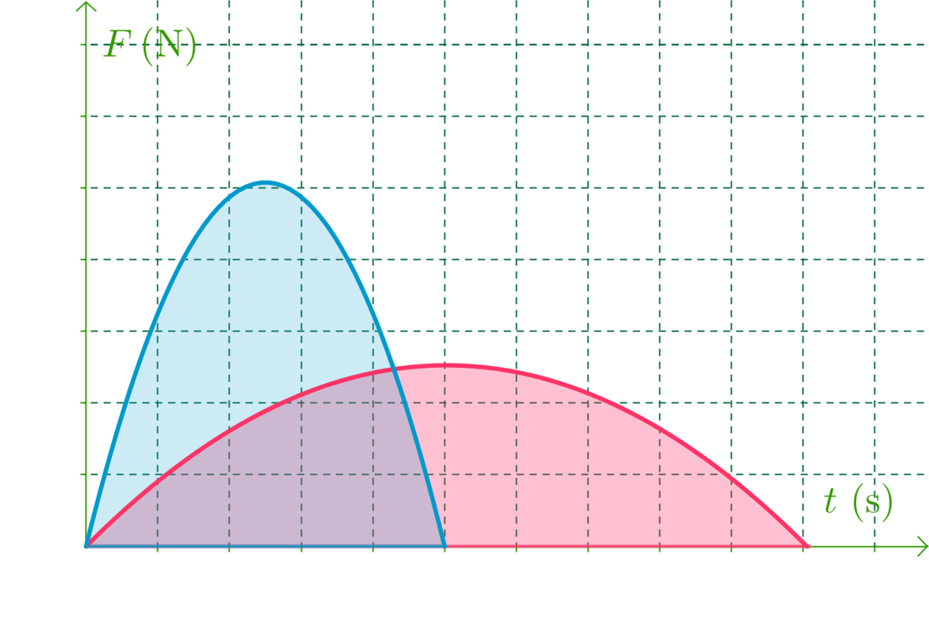 (t, F) -koordinaatiston kuvaajan ja aika-akselin väliin jäävän alueen pinta-alan fysikaalinen tulkinta on kappaleeseen vaikuttava impulssi.