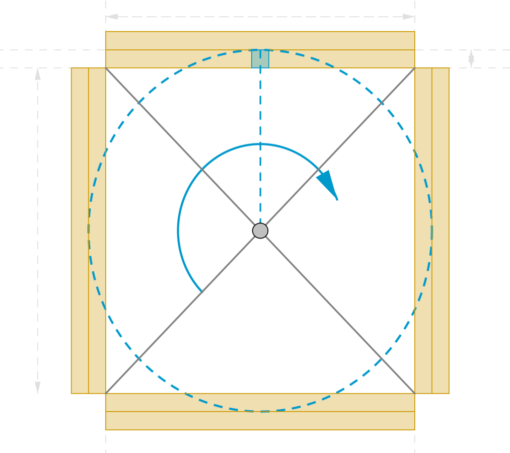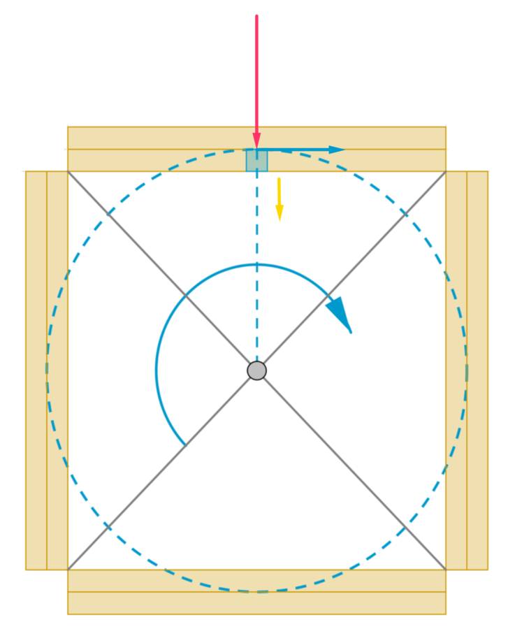 Oletetaan, että linko on tasaisessa pyörimisliikkeessä, jolloin tarkasteltava hunajakennon osanen on tasaisessa ympyräliikkeessä.