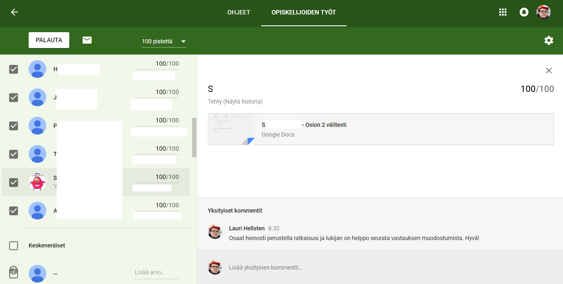 G-Suite tarjoaa opettajalle monipuolisia työvälineitä ja mahdollisuuksia oppimista edistävän arvioinnin toteuttamiseen.