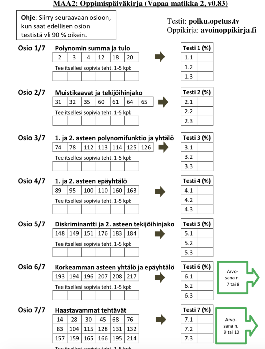 Arviointityökalut 9-11: Itse- ja vertaisarviointi jakson lopussa luo edellytyksiä pitkäjänteiselle opiskelutaitojen kehittymiselle