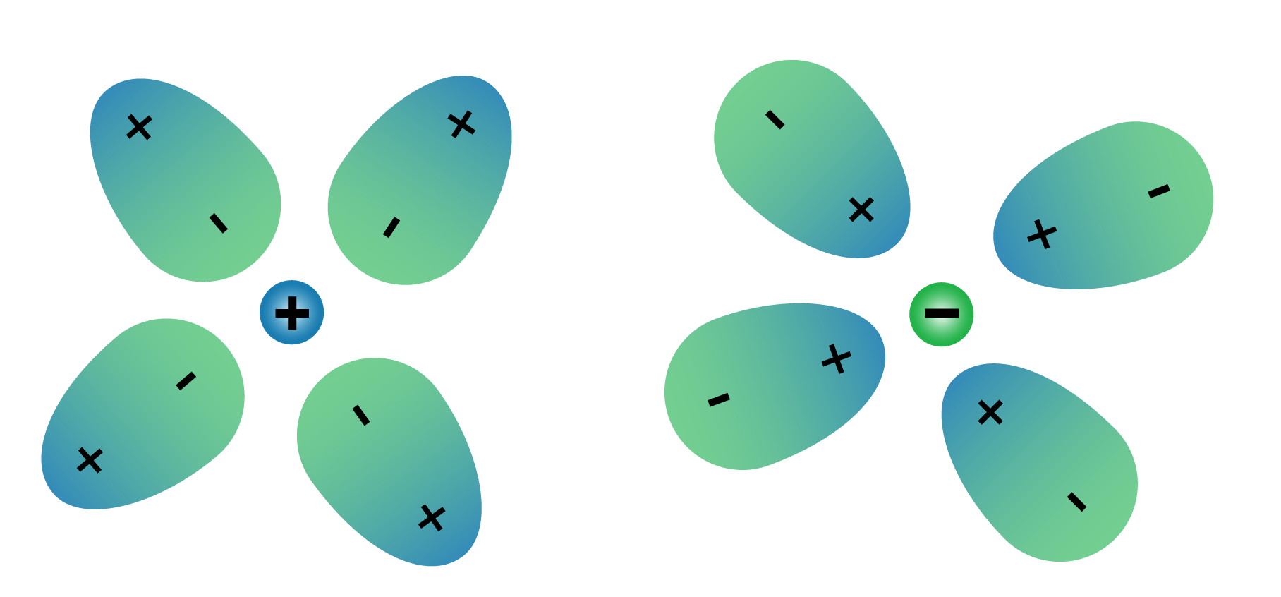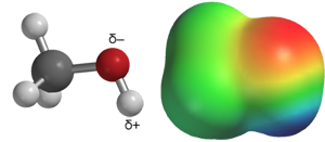 molekyyliin muodostuu varauksellisia alueita