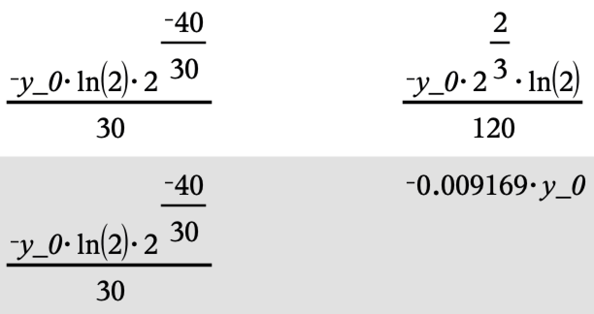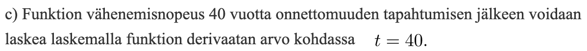 Lasketaan derivaattafunktion arvo sijoittamalla t:n paikalle 40.
