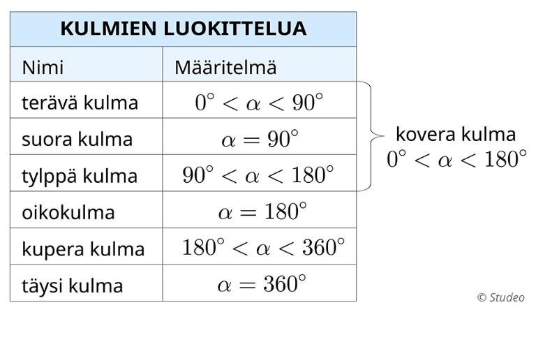 Kulmien luokittelu