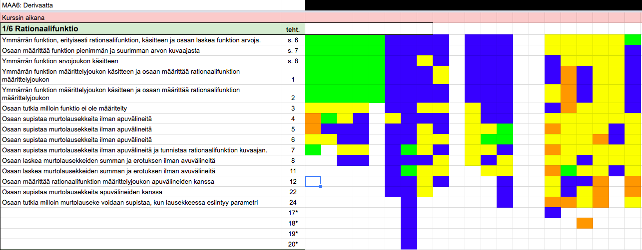 "Olisi kiva jos olisi joku malli aikataulu. Jos haluaa laskea kaikki tehtävät ni kannattaa laskea kotona tähän tehtävään asti tyylisesti."