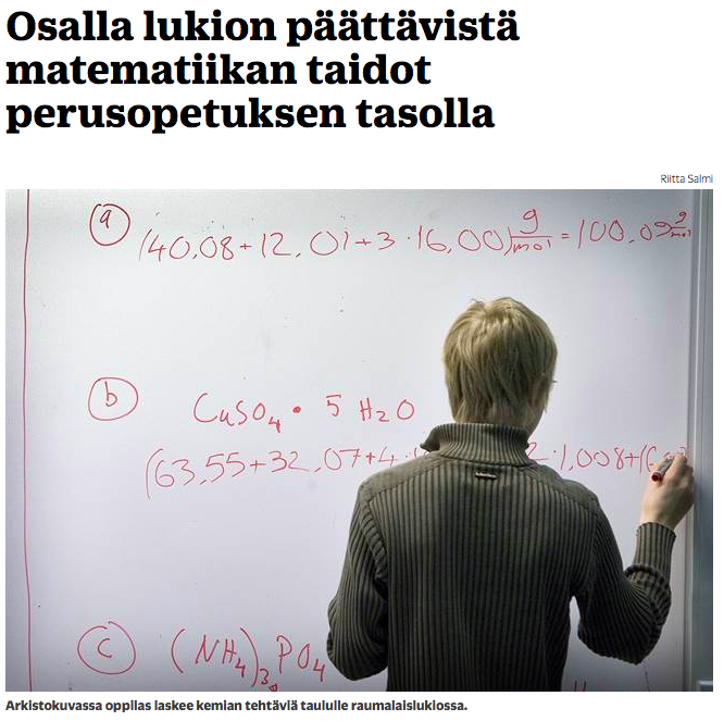 Monet nuoret vierastavat matematiikkaa sisältäviä opintoja, vaikka siihen ei osaamisen puolesta ole syytä (Tuohilampi & Hannula, 2013)