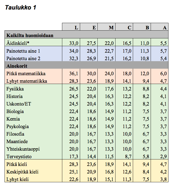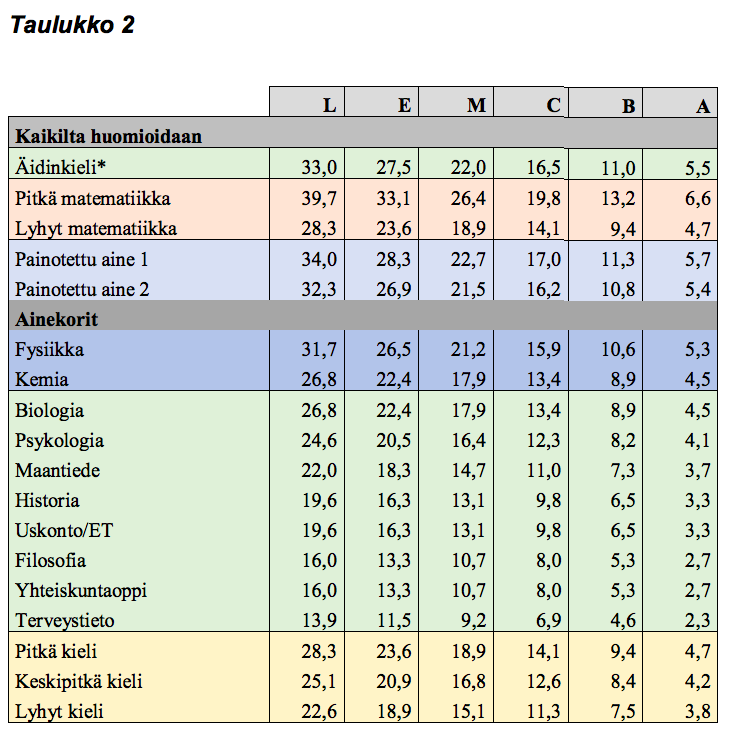 Ylioppilastutkinnon pisteytys todistusvalinnassa