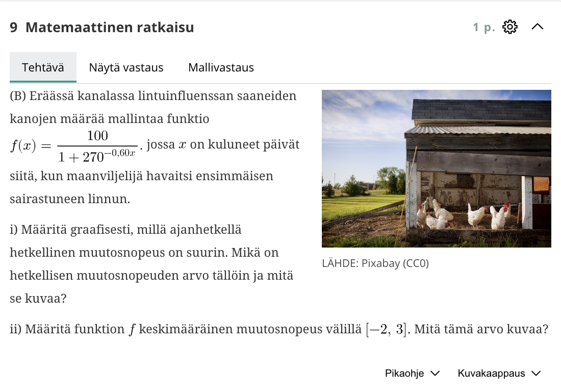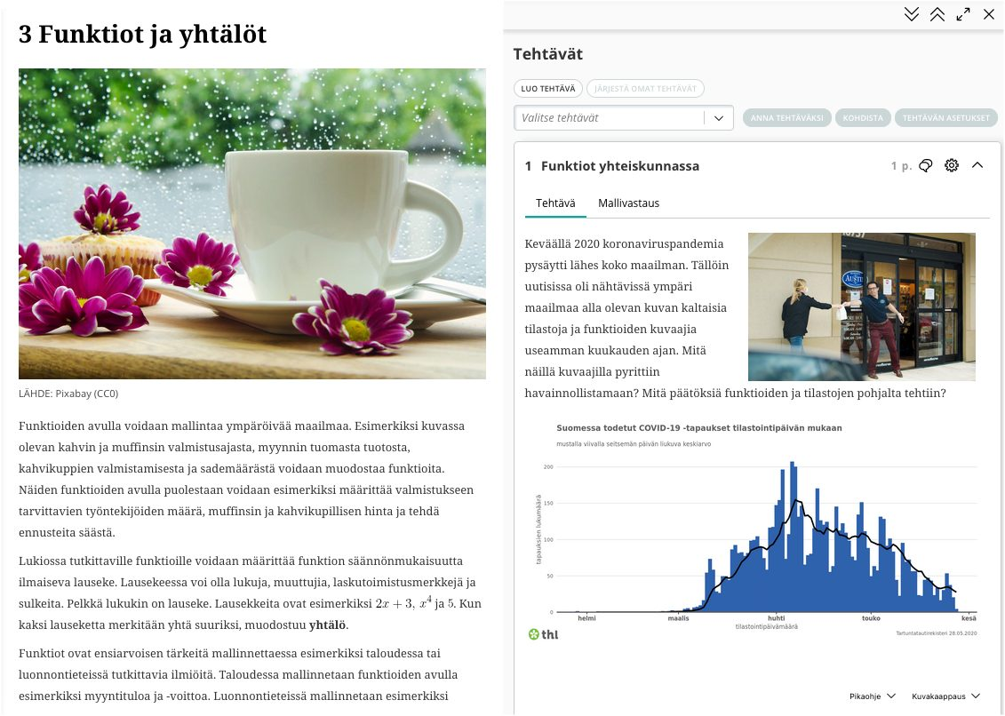 "Test your knowledge!" -sections where students can self-assess their solutions to given problems. Problems are divided into three categories.