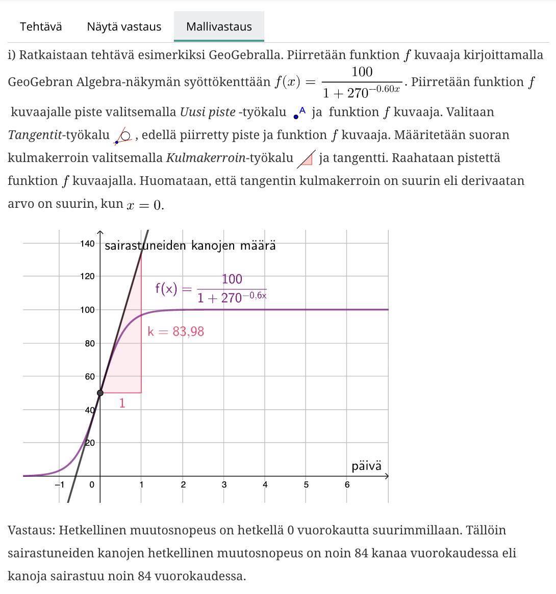 After submitting the their solution to the digital learning enviroment the students can see an example solution for the problem, written with detail.