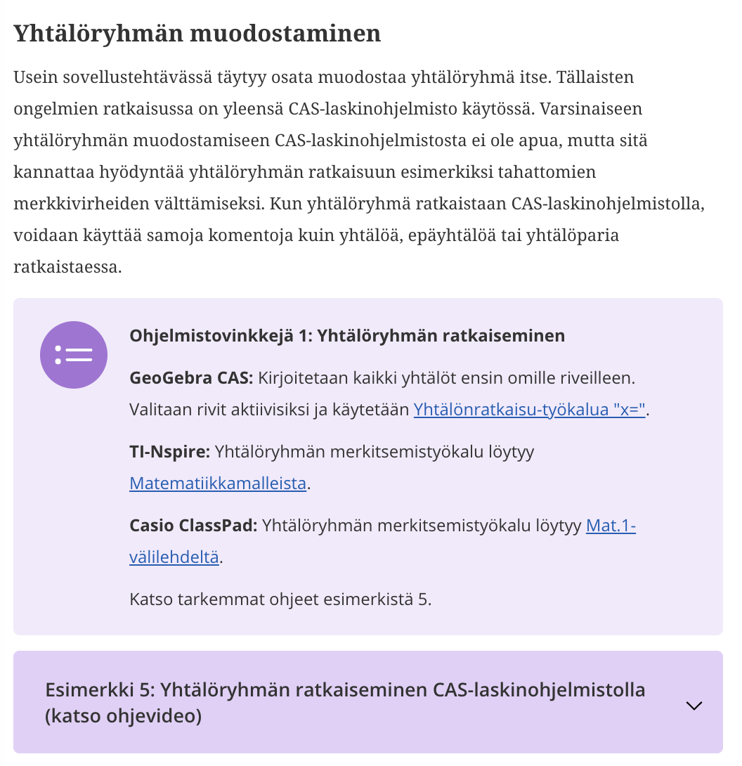 Instructions for the use of different programs GeoGebra / TI-Nspire / Casio Classpad. Detailed examples for the use of programs and solution videos.