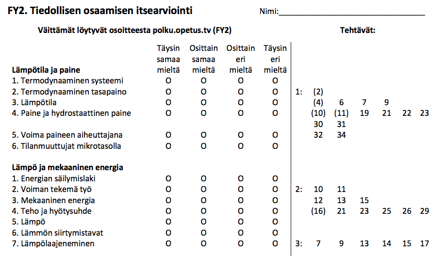 | Valtakunnallisten fysiikan lukiokurssien keskeisien sisältöjen hallinta. | |