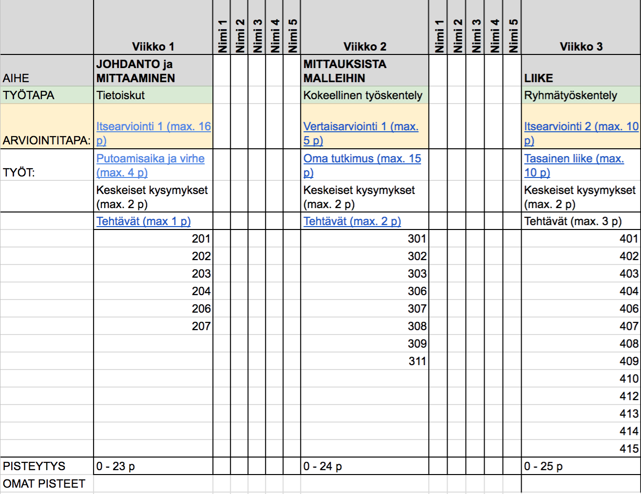"Olisi kiva jos olisi joku malli aikataulu. Jos haluaa laskea kaikki tehtävät ni kannattaa laskea kotona tähän tehtävään asti tyylisesti."