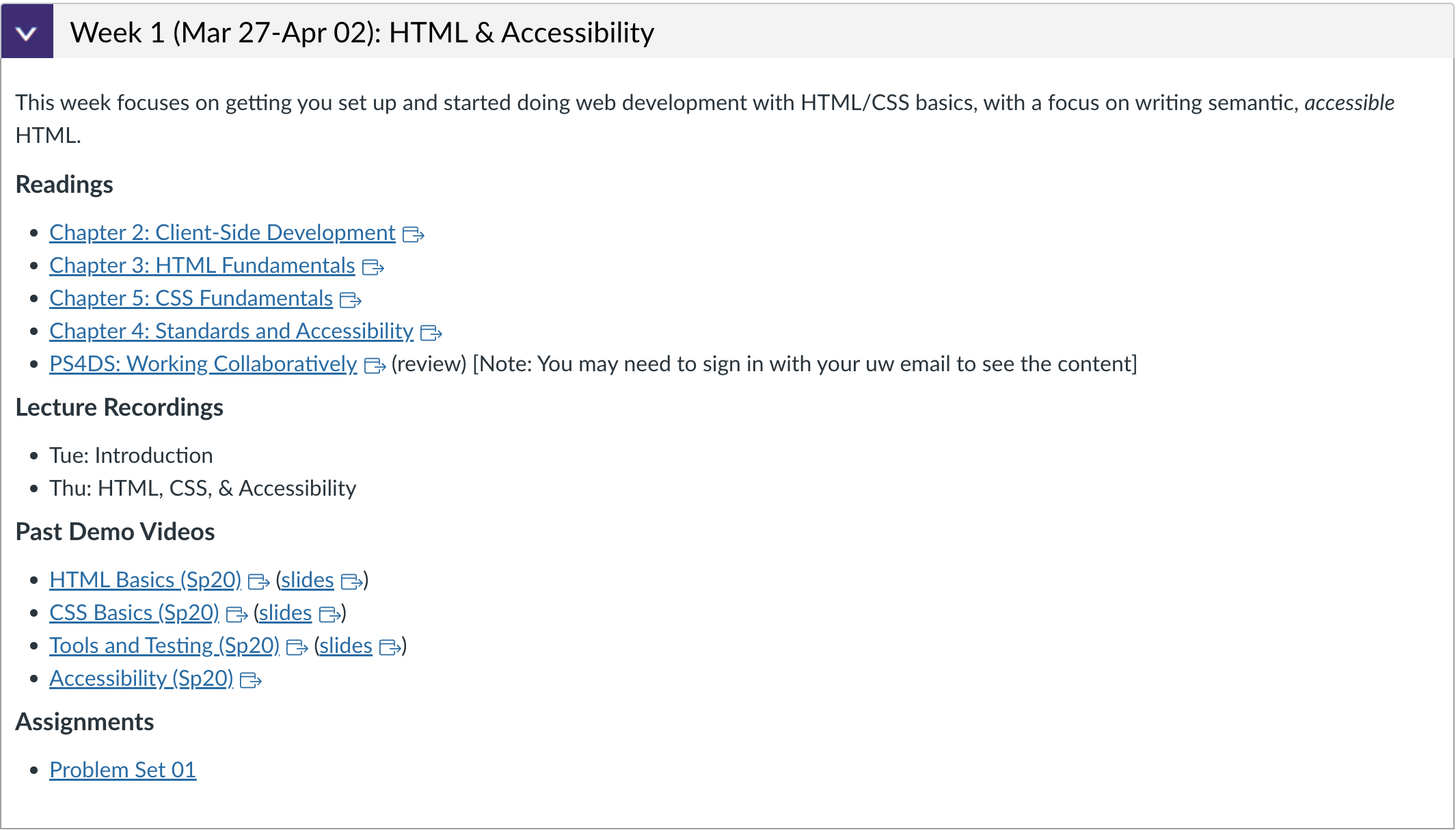 - Add a single short list (ordered <ol> or unordered <ul>) of projects you've done, courses you've taken, etc.