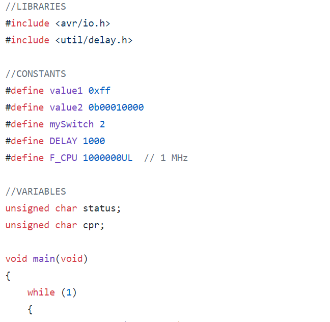 De manera similar al lenguaje ensamblador se puede hacer referencia a los registros de los puertos de entradas y salidas haciendo utilizacion de las palabras claves DDR,PIN,PORT.