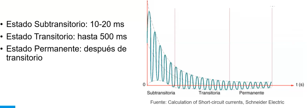 Una vez ocurrido el fallo, los periodos subtransitorio, transitorio y permanente se caracterizan por sus respectivas reactancias.