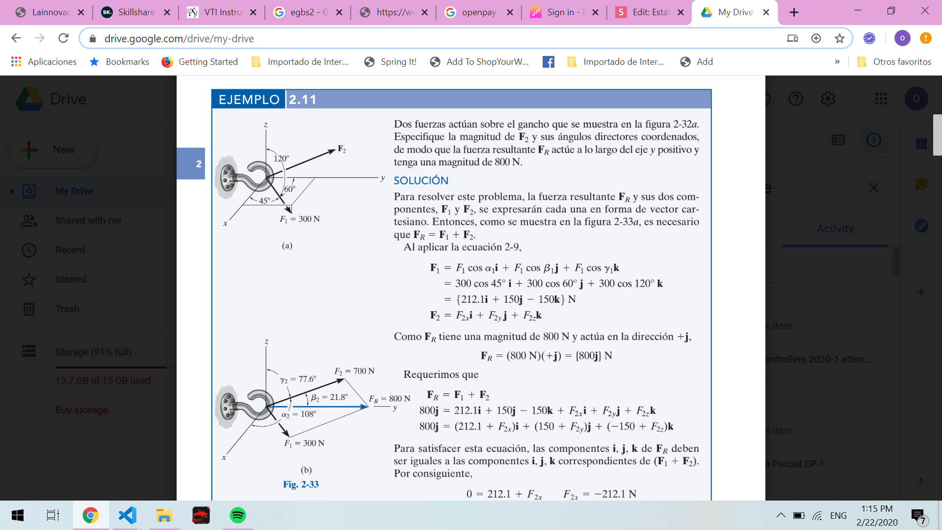 1.7 resultante aplicando ley de senos, ley de cosenos y el de componentes rectangulares.