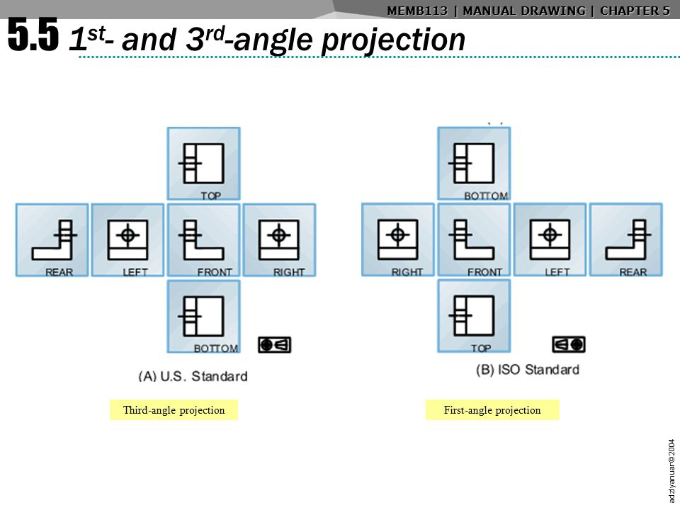 The standard published in ANSI/ASME Y14.3 is common in the United States, where third- angle projection is used.