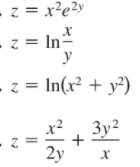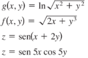 Halle las dos derivadas parciales de primer orden de las siguientes funciones