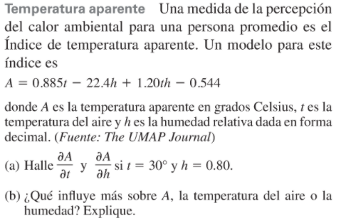 donde A es la temperatura aparente en grados Celsius, t es la temperatura del aire y h es la humedad relativa dada en forma decimal. Fuente: The UMAP Journal.
