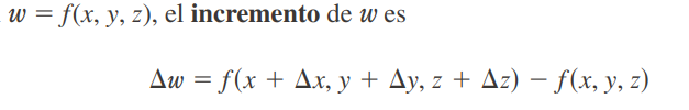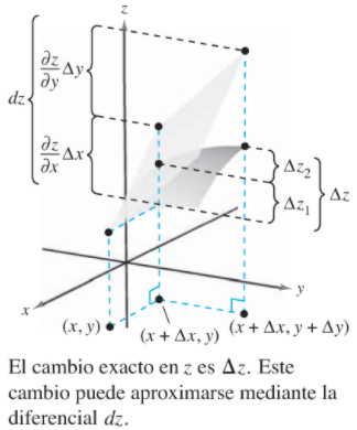 Para determinar el cambio exacto en z=Δz, se establece que este valor se aproxima a dz (la diferencial total), denominada aproximación lineal.