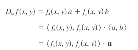 Nótese en el teorema 3 que la derivada direccional de una función derivable puede escribirse como el producto punto de dos vectores: